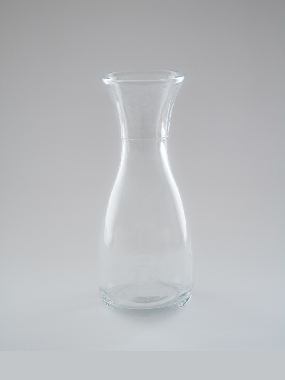 Bocal de vidrio antiguo de un litro, ideal para servir agua, zumos o vino, aportando un aire clásico y sereno a la mesa.