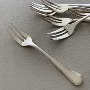 De líneas limpias y elegancia contenida, esta cuchara de servir presenta un diseño geométrico sutil en el extremo del mango, evocando el refinamiento funcional del diseño europeo de mediados del siglo XX.