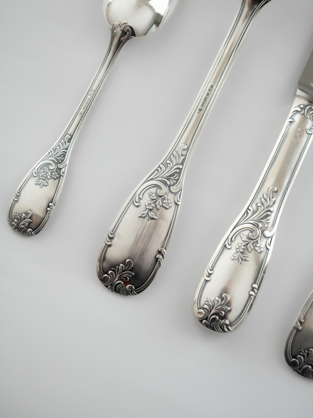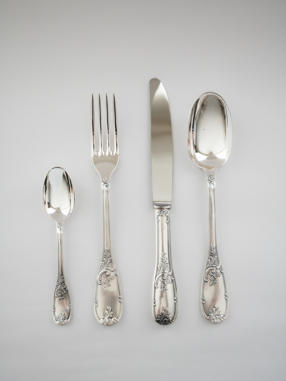 Este antiguo juego de cubiertos Berndorf de 48 piezas con recubrimiento de plata es una verdadera joya de sofisticación y funcionalidad. Recubierto con una capa de plata que le otorga un brillo distintivo, cada pieza refleja la tradición de una de las marcas más respetadas en la orfebrería alemana. Su diseño tradicional y artístico acabado aportan un toque de lujo y refinamiento a cualquier mesa, mientras que la durabilidad y robustez de sus piezas garantizan una experiencia cómoda y de calidad. Este set cubre todas las necesidades de una mesa bien puesta, con cuchillos, tenedores, cucharas y cucharitas para el postre.