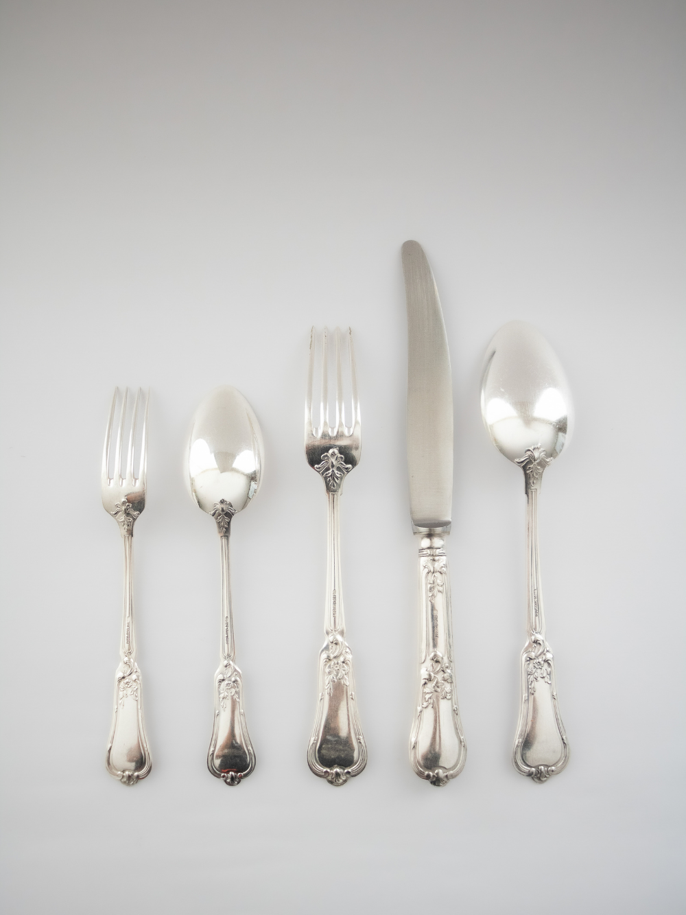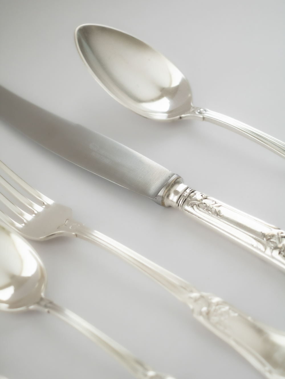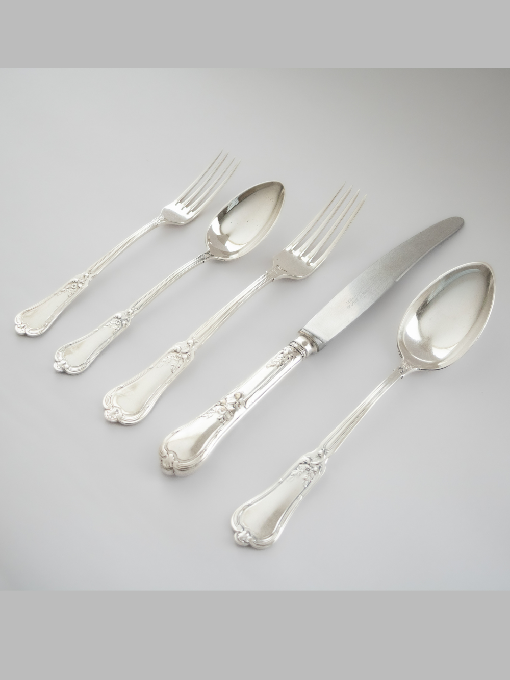 La plata alemana BMF (Bayerische Metallwarenfabrik) es reconocida por su alta calidad y refinada manufactura, combinando tradición artesanal con elegancia atemporal. Estos cubiertos, con un delicado diseño en relieve de inspiración floral y líneas onduladas, evocan el estilo art nouveau, característico de la orfebrería europea de principios del siglo XX. Ideales para mesas que buscan un aire distinguido y sofisticado, son piezas que no solo cumplen su función práctica, sino que también cuentan una historia de buen gusto y tradición. En Fleurs Violettes Maison, los presentamos como auténticos tesoros de ocasión.