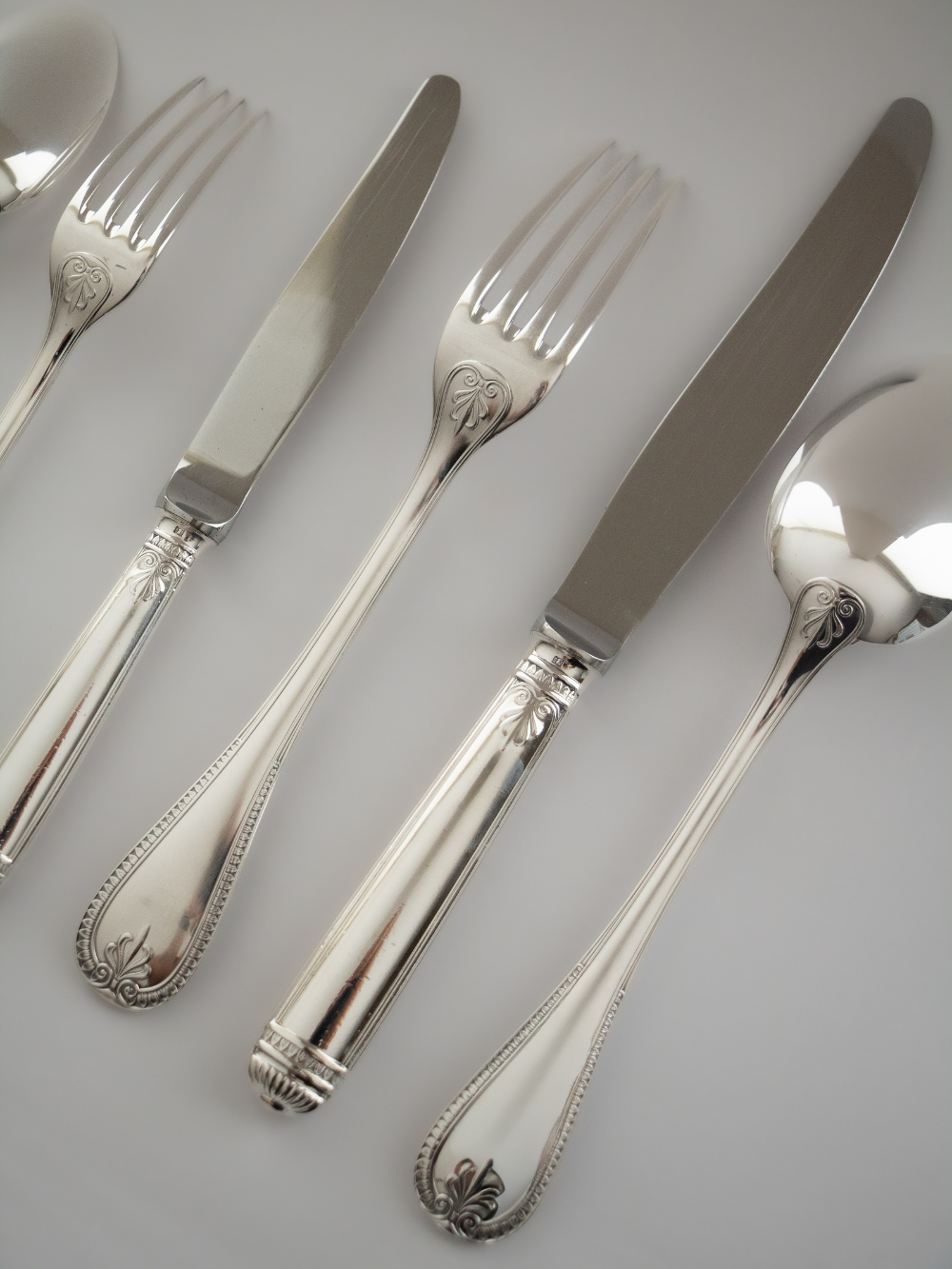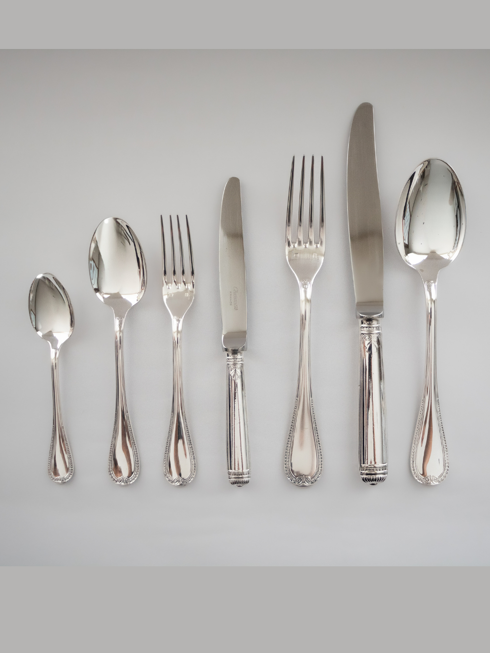 Este espectacular juego de 84 piezas pertenece a la icónica línea Malmaison de Christofle. Inspirado en el estilo Imperio, este modelo se distingue por su elegante decoración de hojas de palma y flor de loto, evocando el esplendor de la época napoleónica. Cada cubierto refleja la tradición y el saber hacer de Christofle, con un diseño sobrio pero majestuoso que transforma cualquier mesa en una celebración. Este juego, cuidadosamente recuperado y en excelente estado, listo para seguir acompañando momentos especiales.Una joya atemporal para quienes valoran la belleza con alma e historia.
