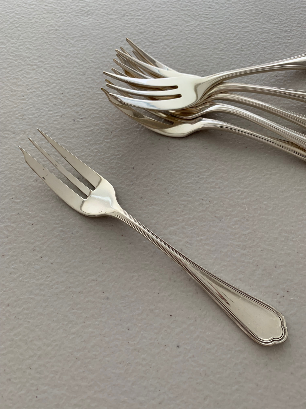 SET TENEDORES DE TORTA X 6 CHRISTOFLE SPATOURS. RECUBRIMIENTO EN PLATA
